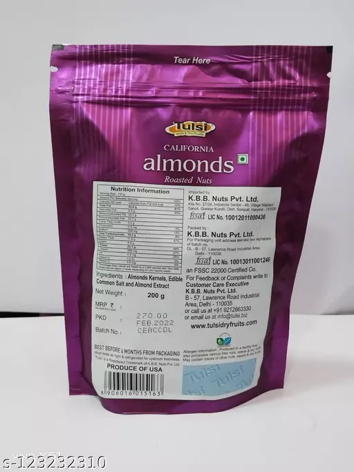 Tulsi California Almonds Roasted Nuts Lightly Salted 200GM