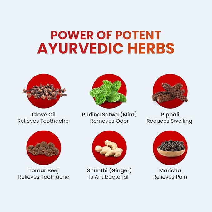 - The herbal formulation works against oral problems like bad breath, plaque, gingivitis, toothache