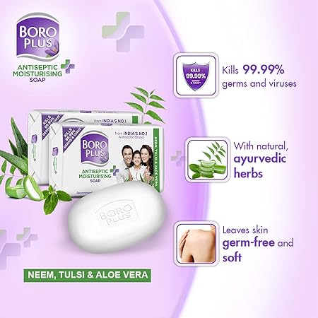 The soap is enriched with natural extracts of Neem which has anti-viral, anti-bacterial, and anti-oxidant properties which help in fighting and killing 99.9% of germs and viruses and also help in healing the skin.