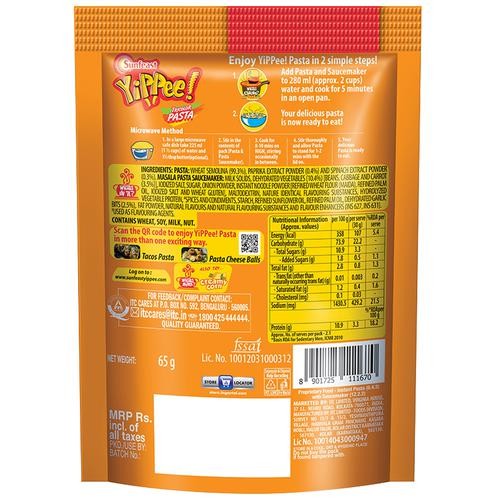 Sunfeast YiPPee! Tricolor Pasta |Soft and Tasty Suji, Rawa Pasta|Masala |65g Pack